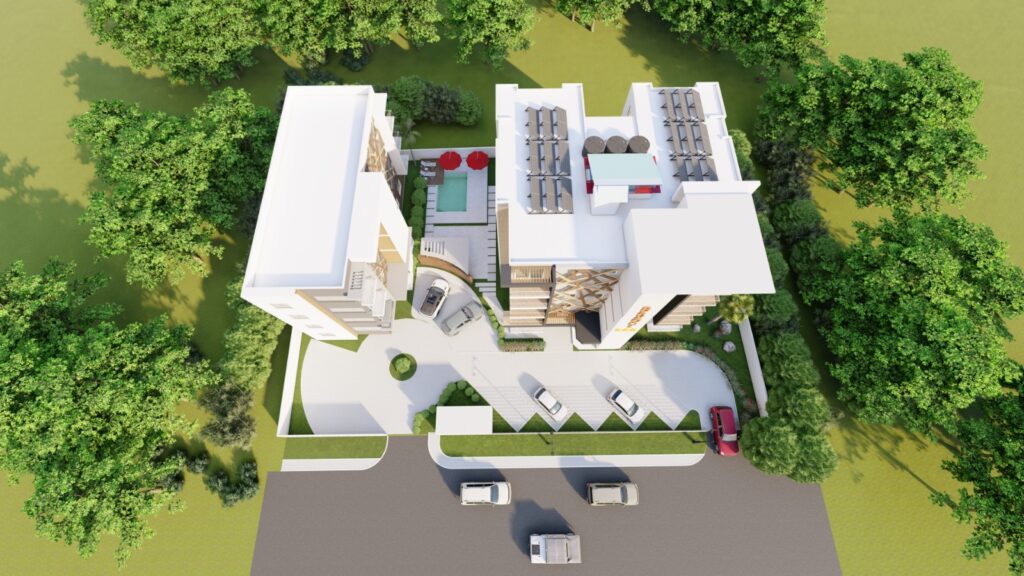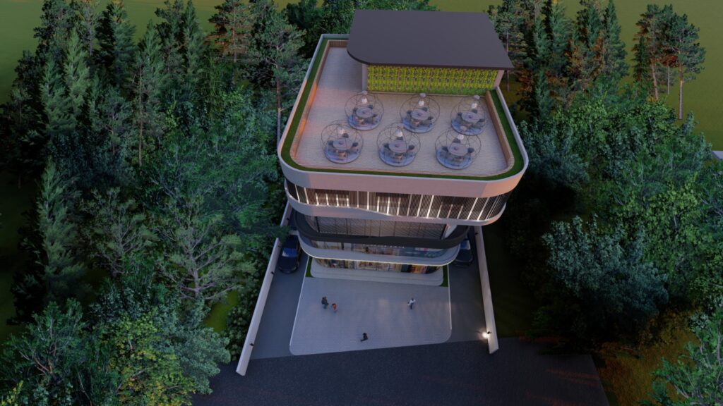 4 level development features shops, office spaces, apartments and rooftop sky bar